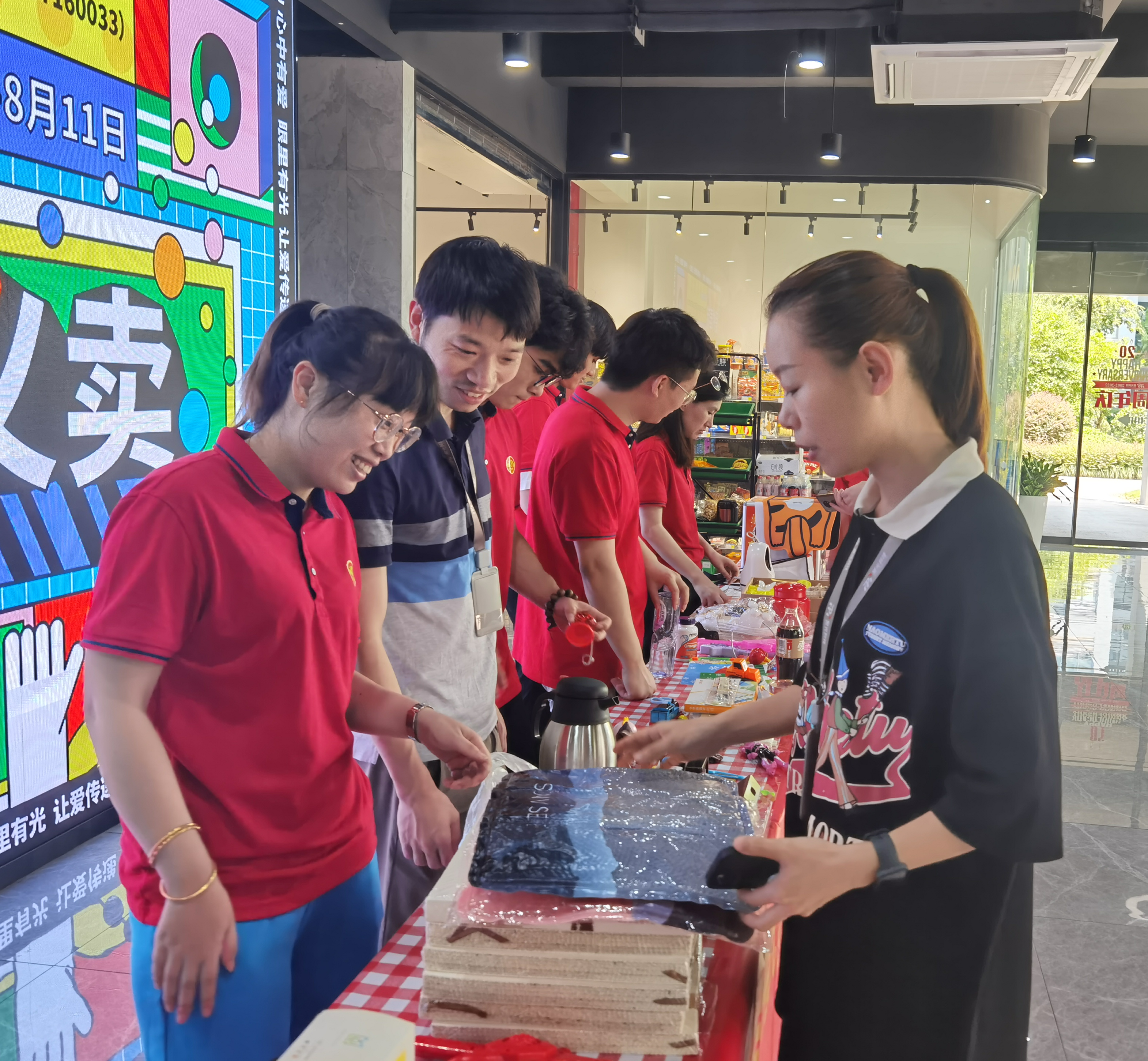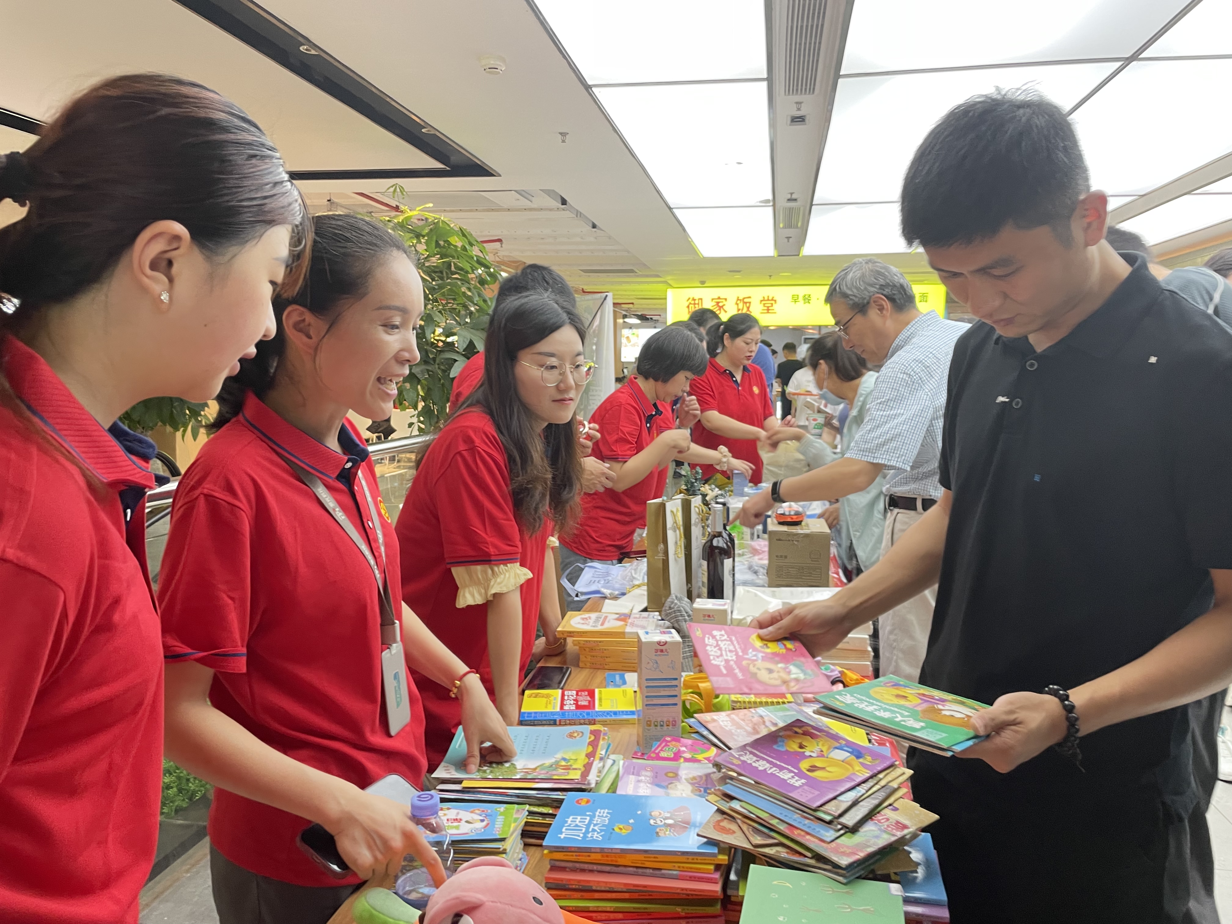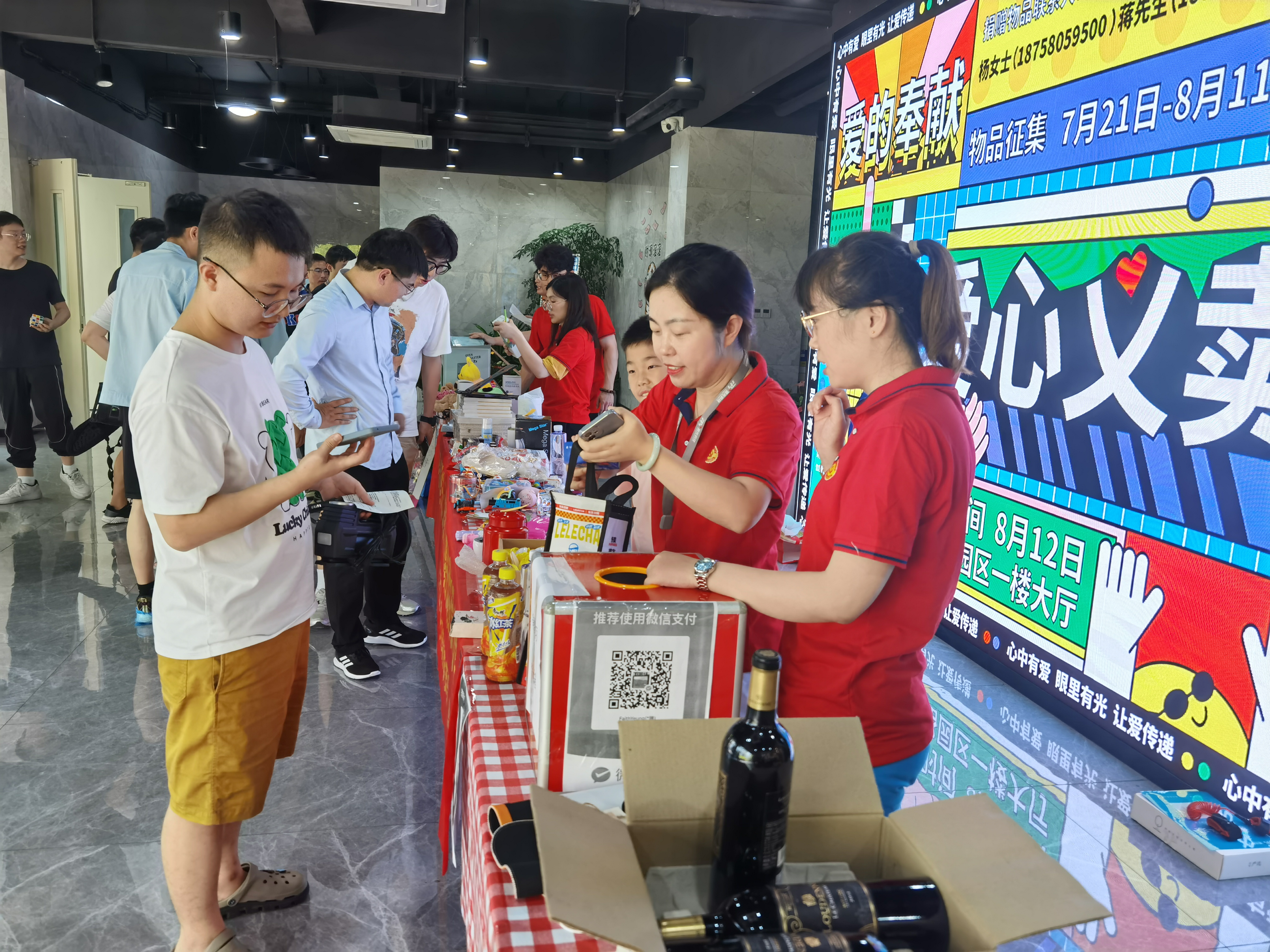 活動當天,兩大園區(qū)義賣現(xiàn)場擺滿了玲瑯滿目的愛心物品,購買者絡繹不絕,大家的熱情似乎比炎熱的天氣更盛。志愿者們相互協(xié)作,有的大聲叫賣,有的耐心推薦,有的引導收款……大家配合默契,活動現(xiàn)場暖意涌動,愛心濃濃。
