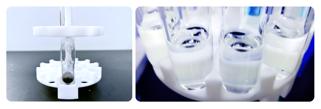 最終,團隊通過譜育科技的超級微波消解技術(shù),實現(xiàn)石墨樣品的完全消解:溶液由黑轉(zhuǎn)澄清,結(jié)果穩(wěn)定且具有良好重復(fù)性