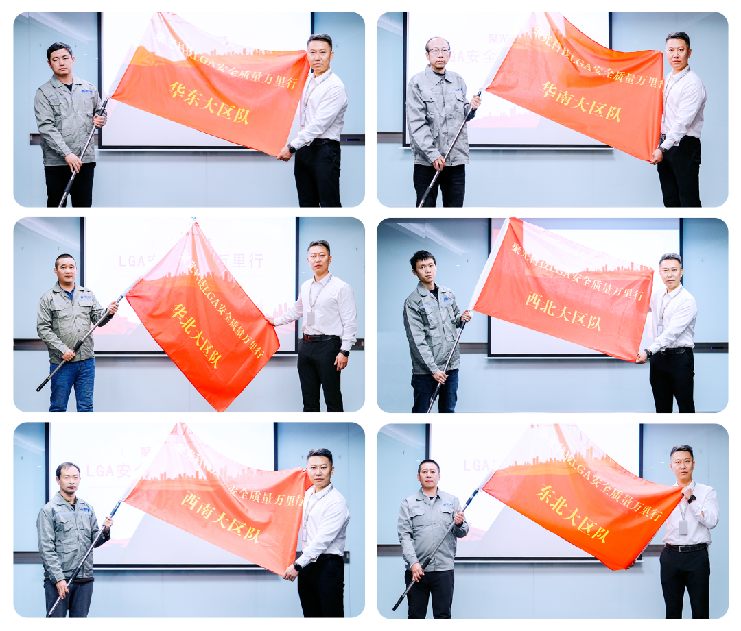 六面承載著安全使命與客戶信任的旗幟被授予各區(qū)域負(fù)責(zé)人,標(biāo)志著這場貫穿全國、歷時持久的質(zhì)量安全行動正式全面鋪開。每一面旗幟的揮動,都代表著一份對客戶安全生產(chǎn)的承諾。